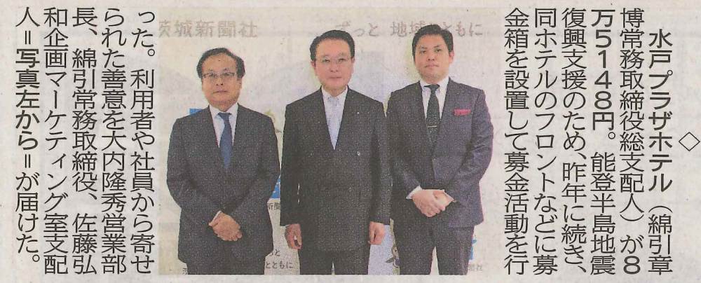なお、お預かりさせていただいた寄付金は、12月25日(木)に「茨城新聞文化福祉事業団 様」へ寄付させていただきました。
