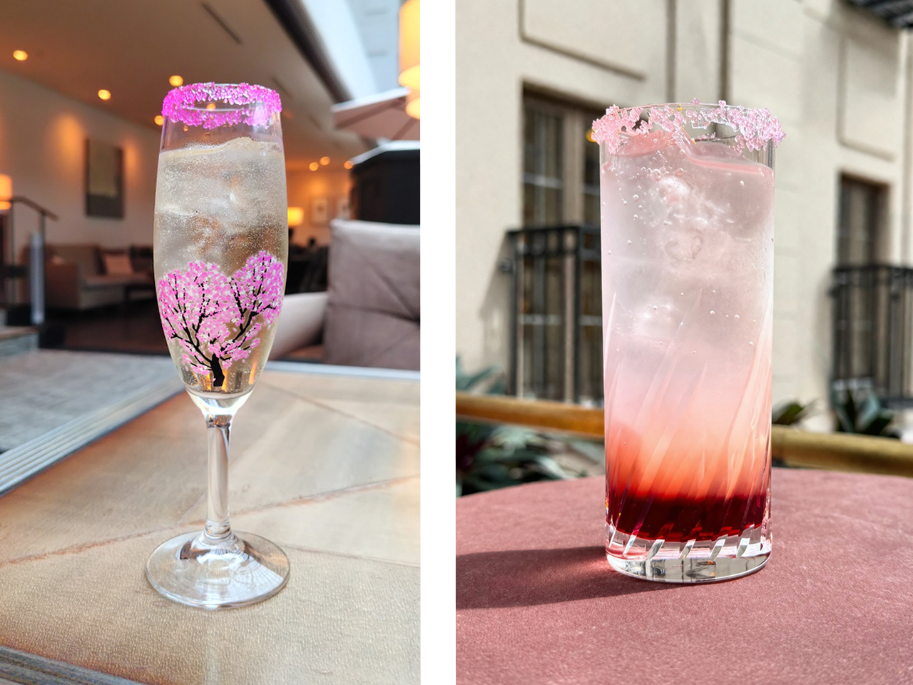 今回の季節のカクテルは、「桜」をテーマにご用意いたしました。アルコール・ノンアルコールの2種類よりお選びください。