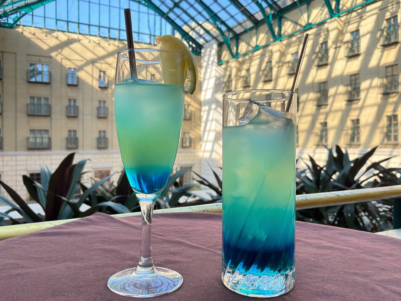 【宿泊者専用ラウンジで】爽やかに広がる初夏の「ネモフィラ」ウェルカムドリンク